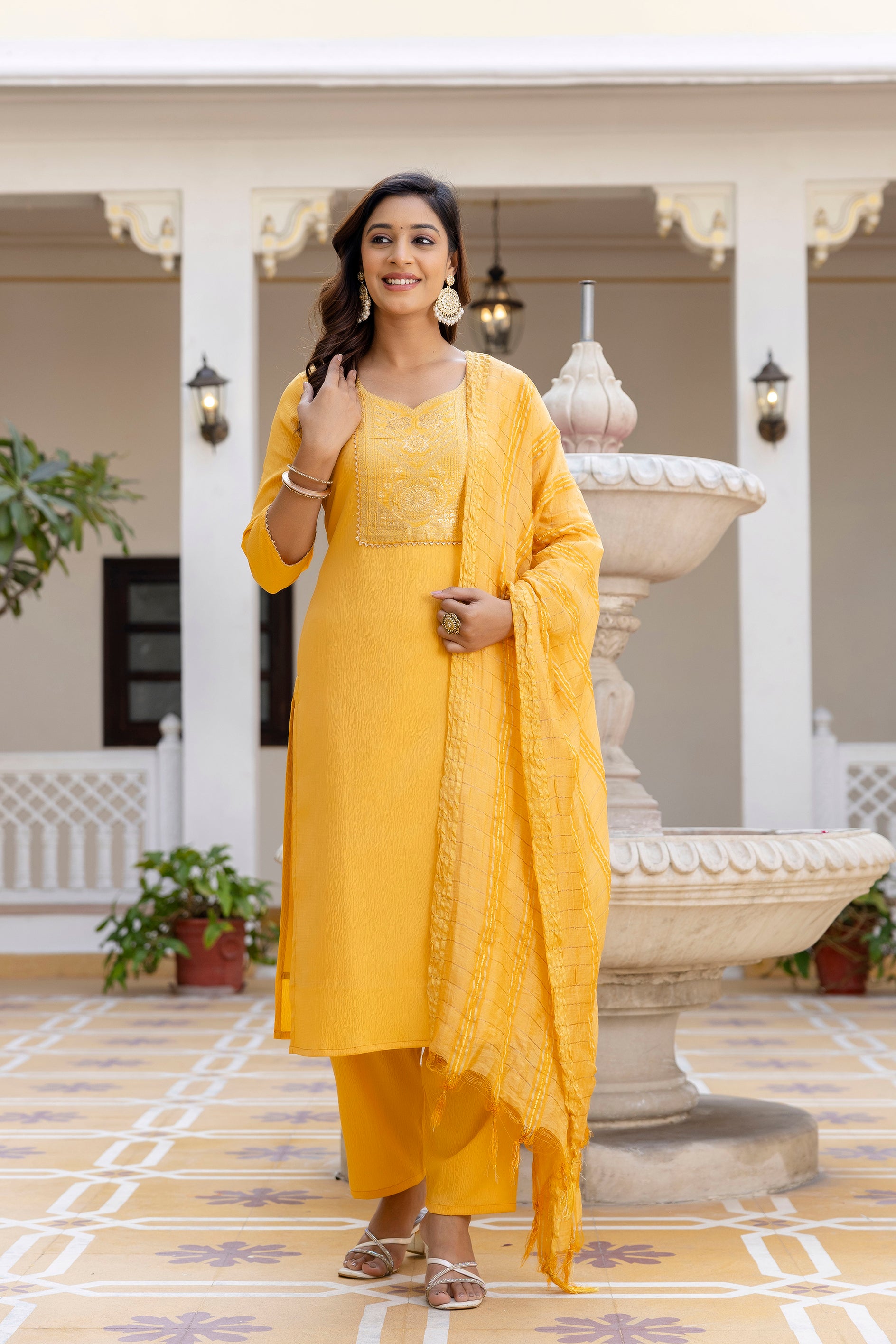 Luxury Silk Suit Set with Rich Jacquard Detailing & Feather-Light Dupatta